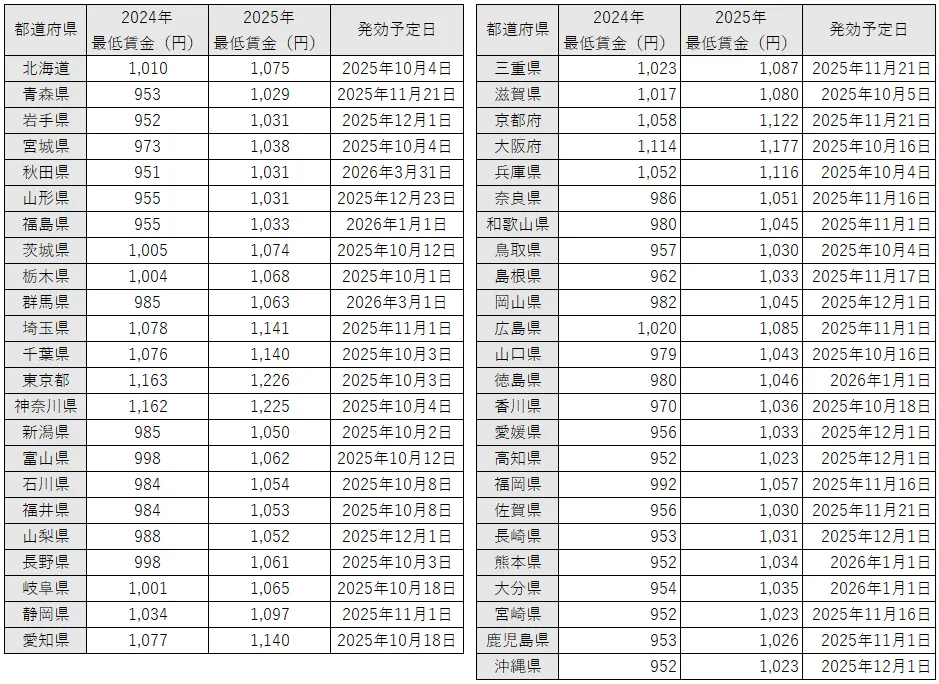 2025年10月以降の最低賃金はいくらになる?